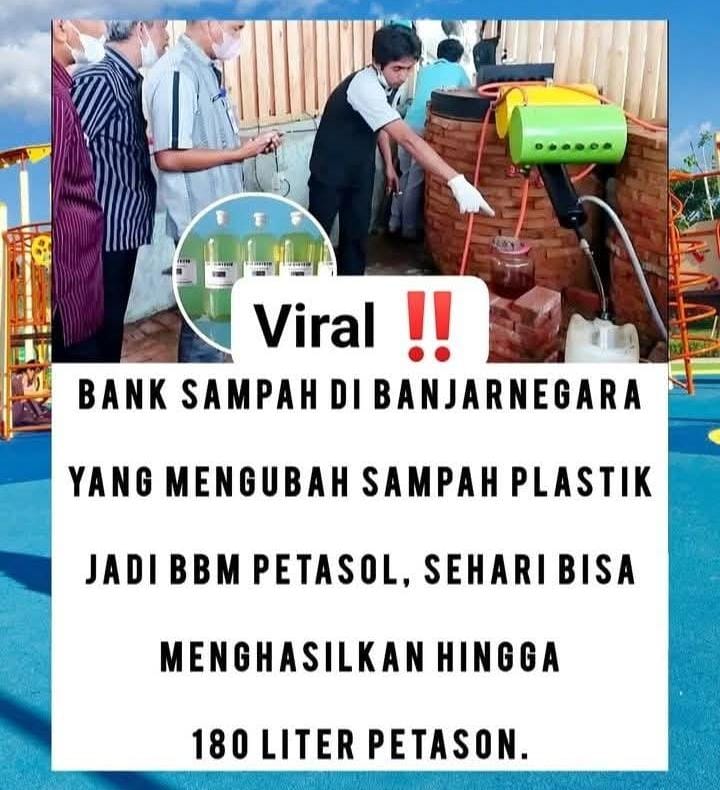 REPORTASE INDONESIA – Banjarnegara, Sampah kantong plastik yang selama ini dianggap tak bernilai kini dapat diolah menjadi bahan bakar minyak (BBM) berkualitas tinggi bernama Petasol. Teknologi ini dikembangkan oleh Bank Sampah Banjarnegara (BSB) melalui metode fast pyrolysis 5.0 (Faspol 5.0) yang ditemukan oleh Budi Trisno Aji sejak 2019.