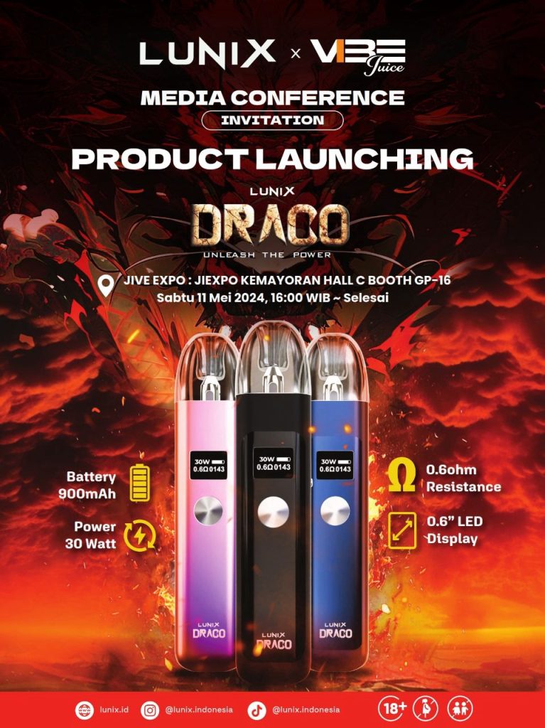 “Kami di Lunix selalu berusaha mendengarkan dan merespon kebutuhan komunitas vaping. Dengan Draco, kami ingin menghadirkan produk yang tidak hanya kuat dari segi performa, tetapi juga nyaman dan stylish untuk digunakan sehari-hari,” kata Ellen Angerani Gunawan – Direktur Utama PT Remax Life Indonesia dengan brand dagang Lunix.